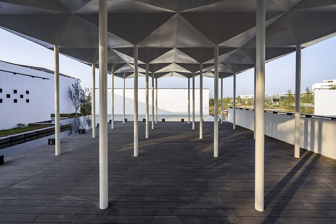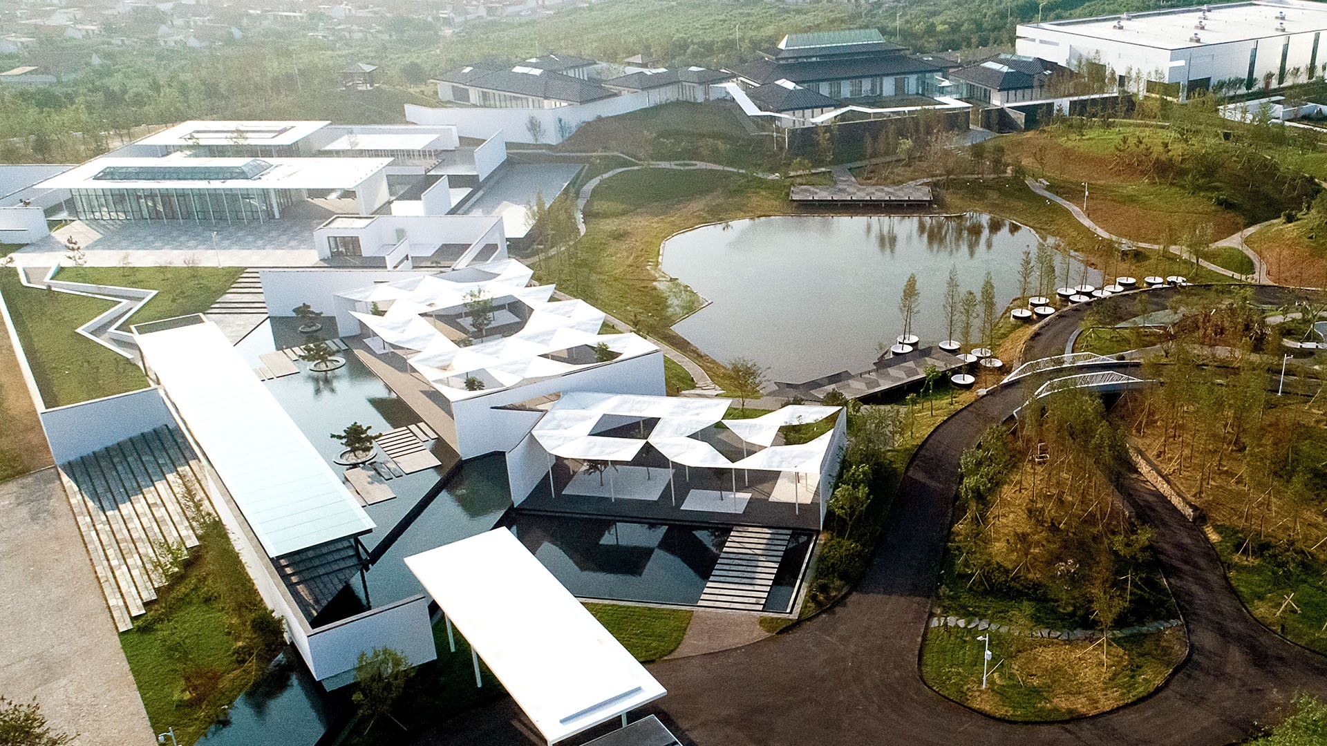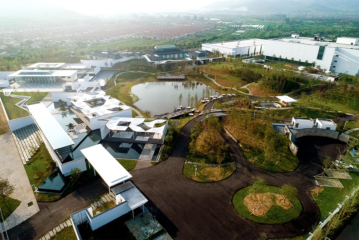 威海中关村休闲综合体位于中国北方临海城市山东威海市南部羊亭镇,是山东中关村医药科技产业园的二期项目,建筑占地4522平方米,景观园林占地39478平方米;在高密度园区厂房建筑群里,呈现出了一个低密度的休闲综合中心,为内部员工提供了一个人文关怀的休闲娱乐场所,以满足日常工作之后休闲、调养身心的需要,减少机械化工作模式给员工带来的精神压抑与伤害。