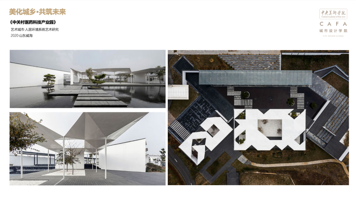 此次活动也是中央美院燕郊校区图书馆的开馆展,展览由中央美术学院院长范迪安担任学术主持,城市设计学院院长马浚诚担任项目策划人,城市设计学院艺术城市设计学部主任李悦担任策展人,民盟中央美术学院支部主委何崴担任特邀策展人,展览共展出公共空间设计、建筑设计、环境设计等作品36件;张春利先生以交流导师组受邀参与研讨,并甄选威海中关村休闲综合体项目对外展出。